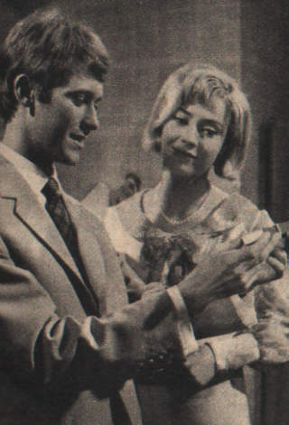 Eine „falsche“ Stewardess (Eva Maria Gebel) muss Thomas unterhalten,