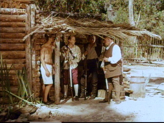 der Kapitän, Dr. Livsey und ihre Leute suchen Zuflucht im Blockhaus,
