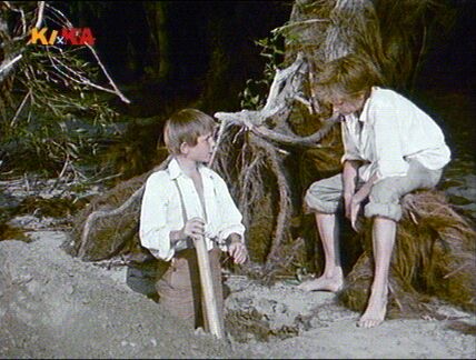 fängt er an, mit Huck nach verborgenen Schätzen zu graben. Ausgerechnet