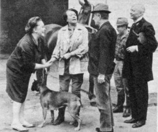 Diana. Da steht ein sonderbarer Mann im Gutshof, der Diana an der Leine
