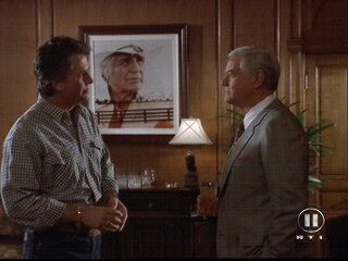 aus und erklärt JR, daß Bobby Ewing Oil von Cliff Barnes gekauft