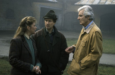 Bild ZDF: Silva von Bernried, Martin Rombach und Baron von Bernried (Jutta Speidel, Christian Wolff und Paul Hubschmid) im Gespräch.
