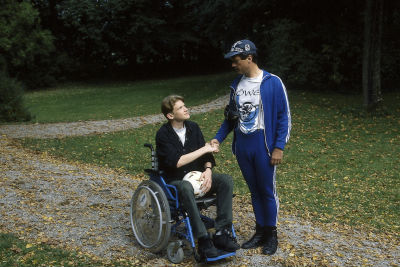 der seit einem Verkehrsunfall im Rollstuhl sitzt. Sie lädt die beiden