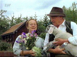 Da kommt Freude auf: Franzi mit Blumen, Pankraz mit einem Schaf.