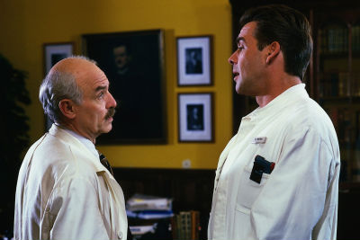 Bild ZDF: Prof. Fockenberg (Charles Brauer, li.) hat das untrügliche Gefühl, dass er nicht alles erfährt, was in seiner Klinik vorgeht. (mit Sascha Hehn).