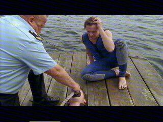 Die Küstenwache nimmt den bewusstlosen Phil Sandos und seinen Freund