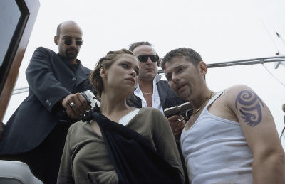 Bild ZDF: Auf der Suche nach der getürmten Inga Smolla treffen die Mafiosos Reck (Mario Lohmann, l.) und Kanter (Peter Kaghanovitch, 2.v.r.) auf Norge (Andreas Arnstedt, r.) und Carlson (Sandra S. Leonhard, 2.v.l.). Werden die beiden skrupellosen Verbrecher ihnen etwas antun?