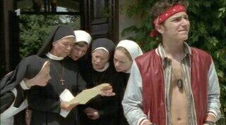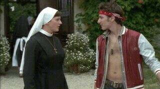 ihren Mopeds auftauchen und in das Kloster "einziehen" wollen. Aber sie