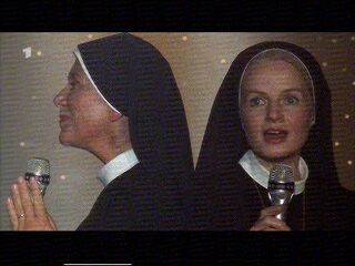 sich Wöller als Elvis-Verschnitt und die Nonnen unter Schwester Lotte