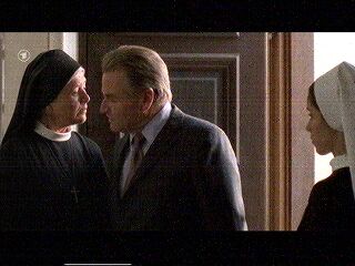 das Kloster. Die Mutter Oberin bekommt Besuch von zwei aufgebrachten jungen