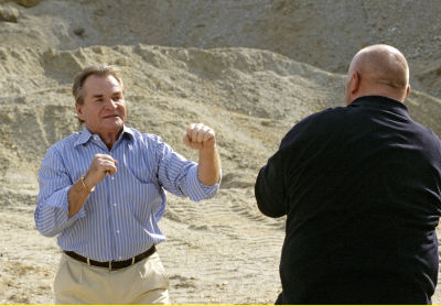 zum Duell in einer Kiesgrube auf. Die Faust soll entscheiden, wer der bessere