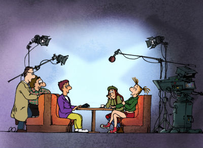 Da kommt ihr Modern zu Hilfe, der erzählt, er habe sie im Fernsehen