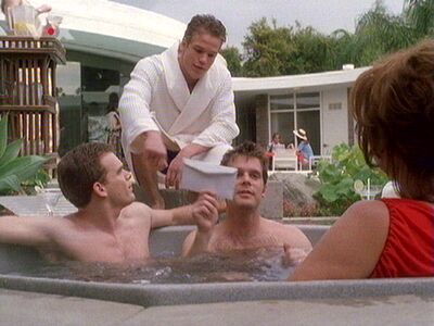 wo Mitzi ihnen im Whirlpool einen Scheck mit einer obszön hohen Summe