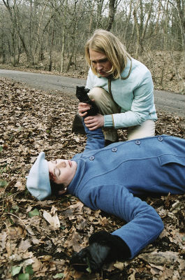 Bild ZDF: Nach der Katastrophe sucht Katys Komplizin (Susanne Schlenzig, r.) bei Judith (Elisabeth Sutterlüty, l.) nach Lebenszeichen.