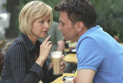 Bild ZDF: Frank Leitmeyer (Matthias Paul) versucht, Sabines (Bojana Golenac) Herz zu erobern.