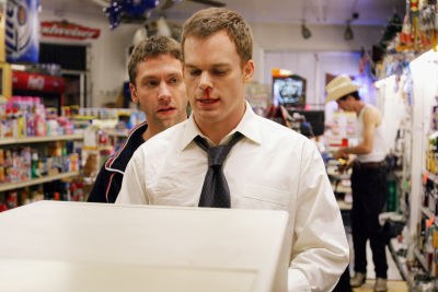 Bild VOX: David (Michael C. Hall, r.) erlebt seine schlimmsten Stunden: Er wird von dem Anhalter Russell (Ben Foster) brutal überfallen und ausgenommen.