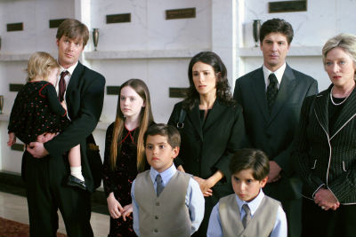 Bild VOX: v.l.: Nate (Peter Krause), Michaela (Steffani Brass), Zwillinge (Michael und Matthew Viens), Barb (Julie Dretzin), Hoyt (Jeff Yagher) und Peg (Veronica Cartwright) bei einer Gedenkfeier für Lisa.