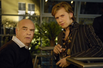 Bild ZDF: Elektrikermeister Bernd Drewitz (Peer Jäger, l.) und sein Lehrling Knud Strecker (Nico Holonics, r.) haben die Stromanlage des Hotels installiert. Ohne das Wissen seines Chefs hat der Lehrling für die Einweihungsfeier des Swimmingpools besondere Geister gerufen. Ob er sie wieder los wird?