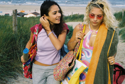 Bild ZDF: Während Dunya (Maryam Hassouni, l.) den Urlaub am Strand genießt, hat Desie (Eva van de Wijdeven) schlechte Laune. Sie ist auf den neuen Freund ihrer Mutter eifersüchtig.