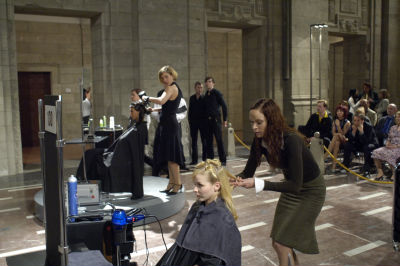 nervös wegen der Frisörmeisterschaften. Auf dem Weg zum Veranstaltungsort