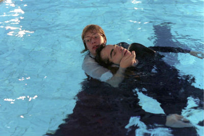 Bild SAT 1: Auf der Modepräsentation verguckt sich Lisa (Alexandra Neldel, l.) prompt in David (Mathis Künzler, r.). Und weil sie sich nicht an ihm satt sehen mag, ist sie die Einzige, die mitbekommt, wie der Womanizer in einen Swimmingpool fällt und ohnmächtig untergeht. Beherzt springt sie hinterher.
