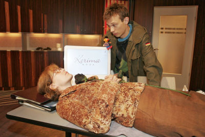Bild SAT 1: Lisa (Alexandra Neldel, l.) will wissen, wie sich Schneewittchen gefühlt hat - Jürgen (Oliver Bokern, r.) soll sie wachküssen.