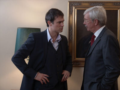 Bild ZDF: Banker Maximilian Monk (r.: Volkert Kraeft) verlangt von Stefan (l.: Ralf Bauer), seine Tochter zu heiraten.