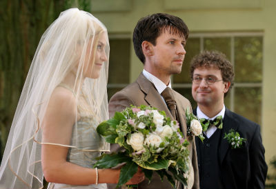 Bild ZDF: Jan ist der Trauzeuge von Julia und Daniel (Susanne Gärtner, Roman Rossa, Stefan Mocker, v.l.n.r.). |