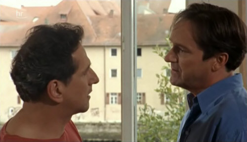 Bild: Ende einer Freundschaft, denn Thorsten (Stefan Reck) zieht sich aus dem Geschäft zurück. Carlo (Helmut Zierl) steht vor einem Trümmerhaufen.