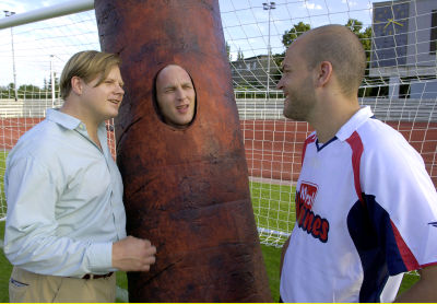 des Superfußballers Chris, bei einem Kneipentreffen an Winnes Schulter