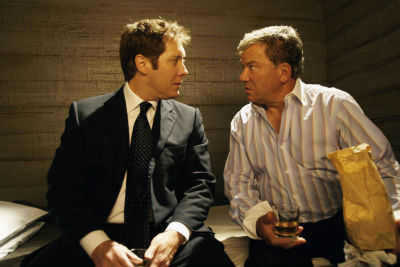 Bild Vox: Anwalt Alan Shore (James Spader, l.) besucht seinen Mentor und Seniorpartner Denny Crane (William Shatner) im Gefängnis.