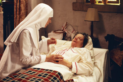 Bild ZDF: Anna (Ute Cremer) versucht, der sterbenden Schwester Benedicta (Renate Grosser) noch ihr Geheimnis zu entlocken.