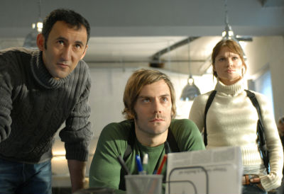 Bild ZDF: Cem (Ercan Durmaz, l.), Pit (Daniel Wiemer, M.) und Nina (Daniela Preuß, r.) beobachten, wie ihre Kollegen erfolgreich ein Verhör durchführen und dem Verbrecher ein Geständnis entlocken.