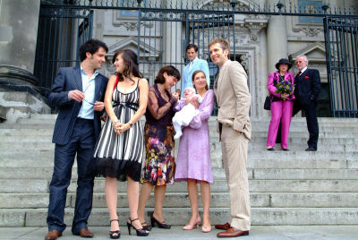 Bild Pro 7: Taufe der Nichte Lucie: Clara (Julia-Maria Köhler, 2.v.l.) und Paul (Sascha Göpel, l.) wissen immer noch, ob sie ihr Baby wirklich wollen.