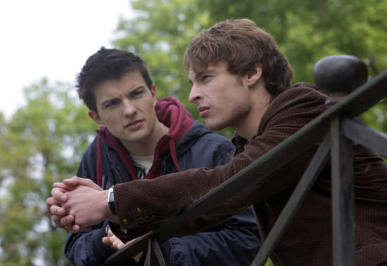Melanie ist traurig, dass Sebastian sich von ihr getrennt hat, um sie angeblich zu schützen, obwohl sie sich mit ihren Freundinnen überworfen hat. Grauberg versucht sie zu trösten und gibt ihr Mut, wieder auf ihre Freundinnen zuzugehen. Als diese aber über die Trennung von Sebastian erleichtert sind, fühlt Melanie sich unverstanden und verlässt mit ihren Unterlagen die Werke. Sebastian findet die aufgelöste Melanie und nimmt sie zu sich, aber nur weil er neugierig auf die Unterlagen ist. Melanie muss enttäuscht erkennen, dass er sie nur ausnutzt. - Theo ist fassungslos, als er erfährt, dass Paul sich in Rosa verliebt hat. Er empfindet es als Vertrauensbruch, dass Paul ihm das nicht schon früher anvertraut hat. Trotzdem beschließt Theo schließlich, seinem Freund beim Bestehen des Abiturs zu helfen. - Da die zuständige Baufirma pleite ist, müssen Bärbel und Gaston den Abwasseranschluss selbst bezahlen. Bärbel hat schließlich eine Idee, wie sie zusätzlich Geld verdienen können: Catering für die Wetzmann-Werke. Gaston ist davon jedoch nicht wirklich angetan. ![]() Theo (Patrick Jahns, r.) ist fassungslos, dass Paul (Joel Stuehl, l.) in Rosa verliebt ist. |