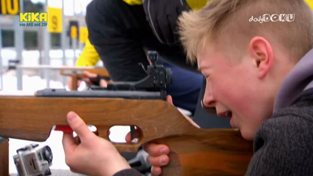 eine äußerst schwierige Wintersport-Aktion: Biathlon, also Skilanglauf