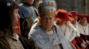 Rodrigo als Papst Alexander VI. und seine Familie flüchten vor