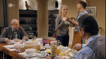 kurz in die Behandlung einmischt, aber sofort zurechtgewiesen wird: Familienmitglieder