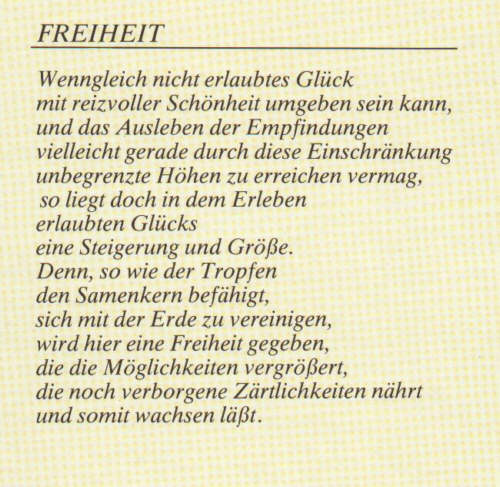 Landschaft, in die diese unschuldige Liebe gebettet wird. Ach ja... Und